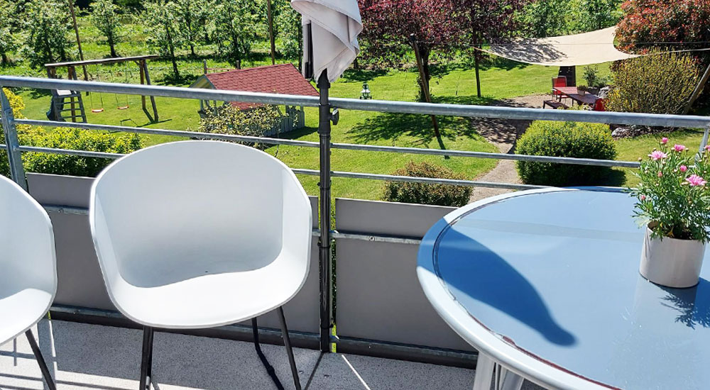 Neben großzügigem Wohnraum – die größte unserer Wohnungen ist zweistöckig angelegt – verfügen alle Wohnungen über separate Eingänge und Balkon oder Terrasse.