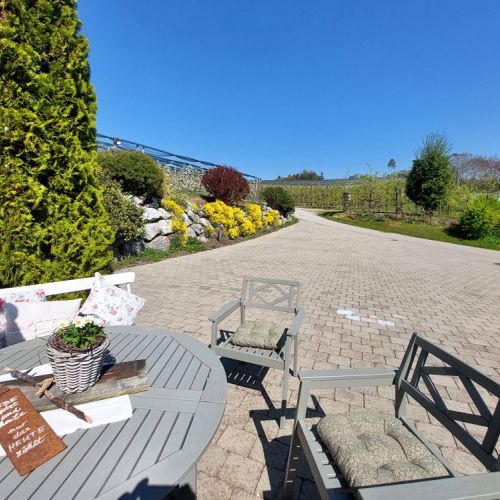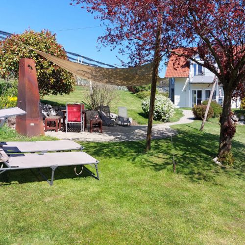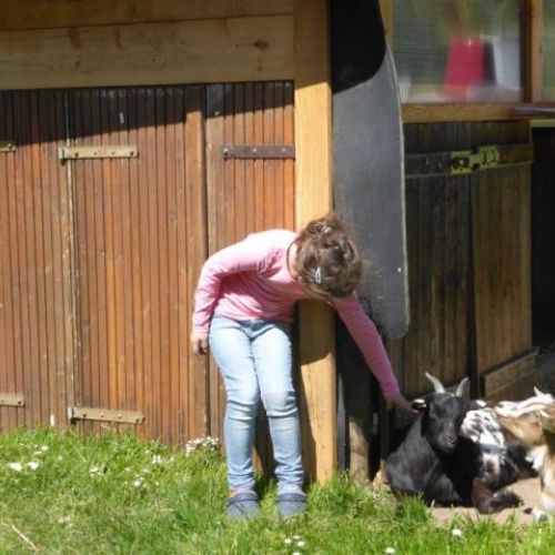 Für unsere ganz jungen Gäste gibt es Schaukeln, ein Trampolin, einen überdachten Sandkasten, ein Fußballfeld und Tiere zum Füttern.